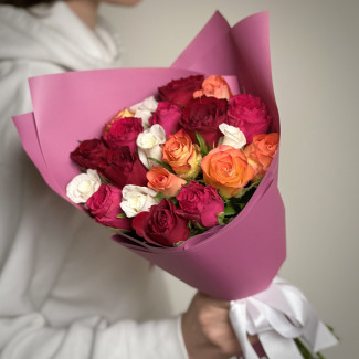 Букет представлен розами сорта «Кения», который известен нежной и одновременно насыщенной окраской. Оформление композиции продумано флористами интернет-магазина вДубне до последнего штриха. Адресат получит букет из 21 розы, который желтыми, белыми, красноватыми нотками наполнит общую композицию. Утонченность каждого цветка сопроводим долгой сохранностью аромата срезанных стеблей.