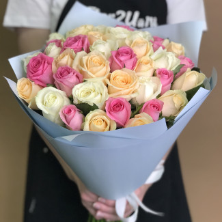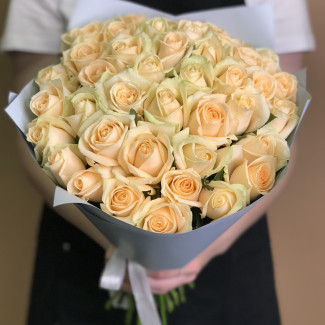 Букет из 41 белой розы – универсальный презент, который можно преподнести на день рождения, свадьбу или крестины малыша. Также заказчик может выбрать вариант с красными, желтыми, оранжевыми, кремовыми розами или миксы. По желанию клиента мы упакуем цветы в традиционную однотонную крафт-бумагу или фетр.